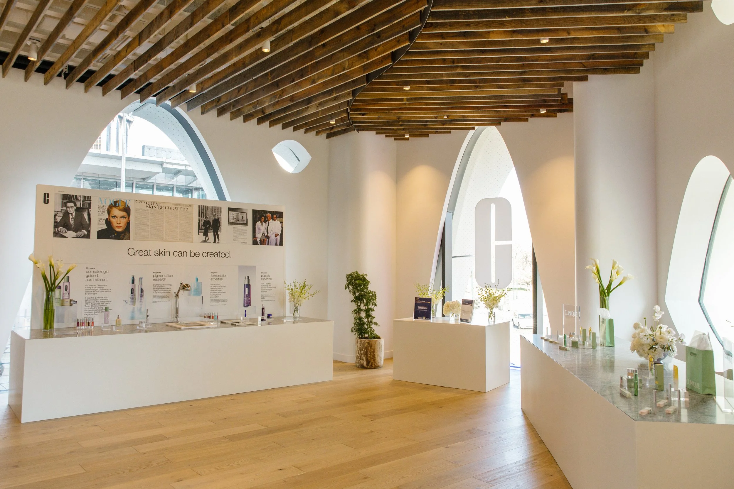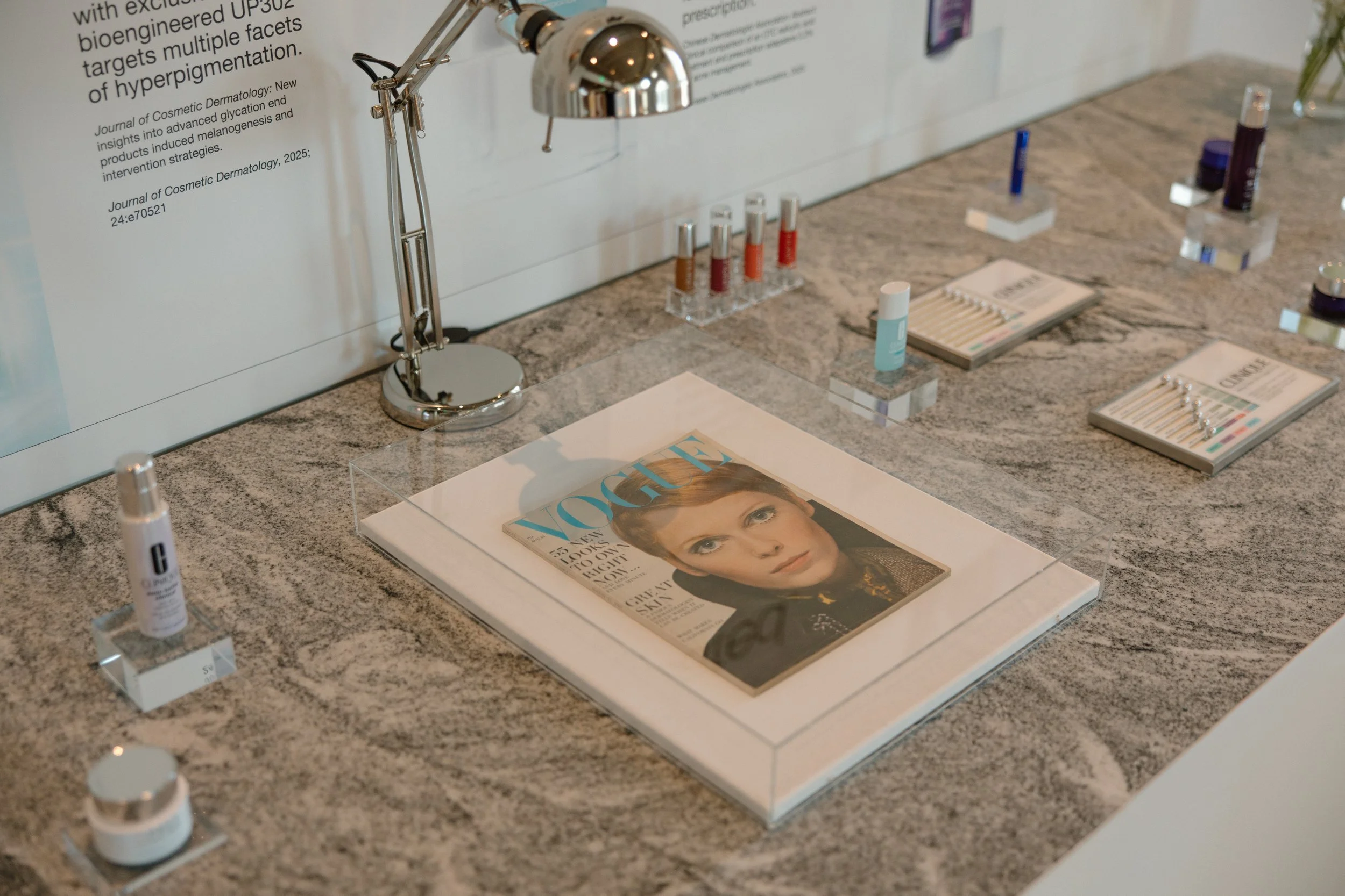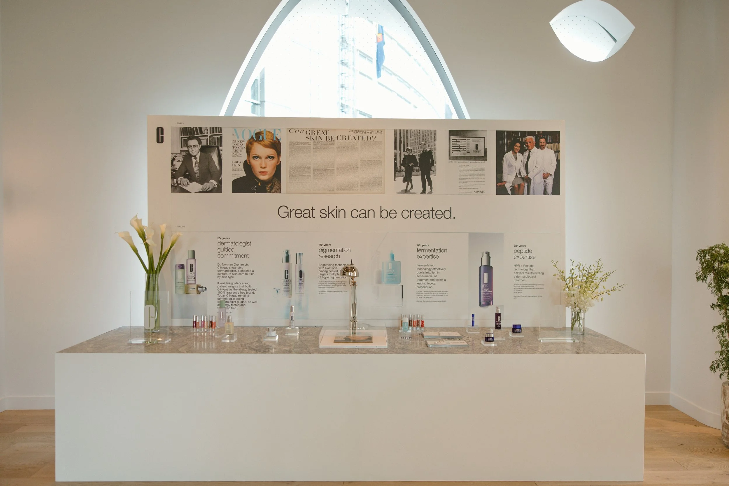 We worked with our partners at Clinique to document the origin story of the iconic beauty brand. We worked with them to display some timeless heirlooms from their collection: two original Clinique “skincare type” computers, and the original edition of the August 1967 Vogue Magazine, headline: ‘Can Great Skin Be Created?’ which immortalized their brand.
