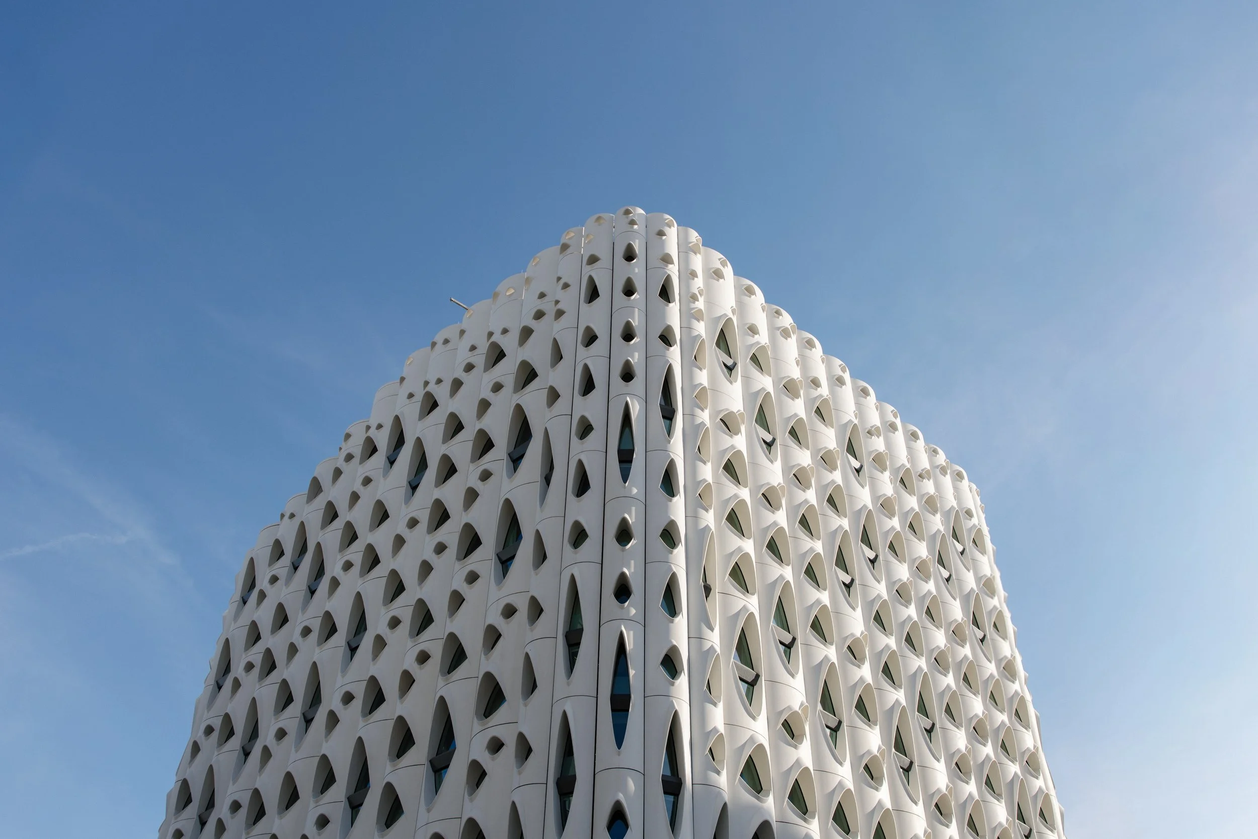 The newly constructed Populus hotel is the latest and most architecturally elegant addition to Denver’s skyline. Designed by esteemed architectural firm Studio Gang and only completed in 2024, the Populus has a stunning structure that was a perfect compliment to Clinique’s minimalist and scientific aesthetic.
