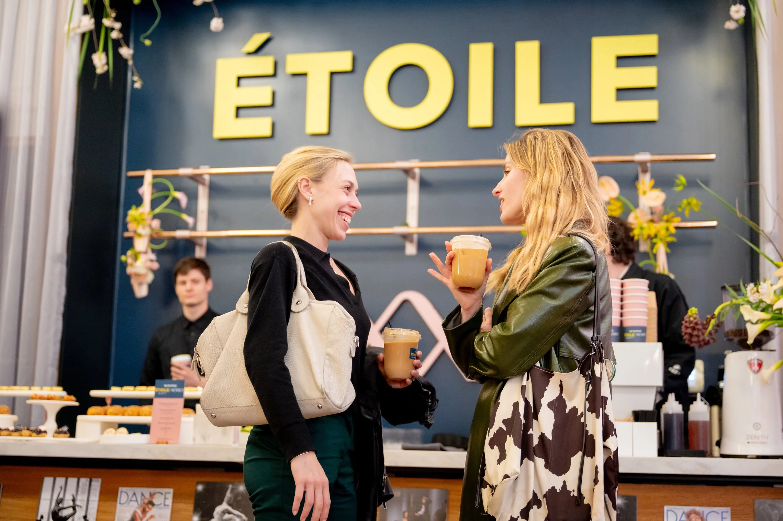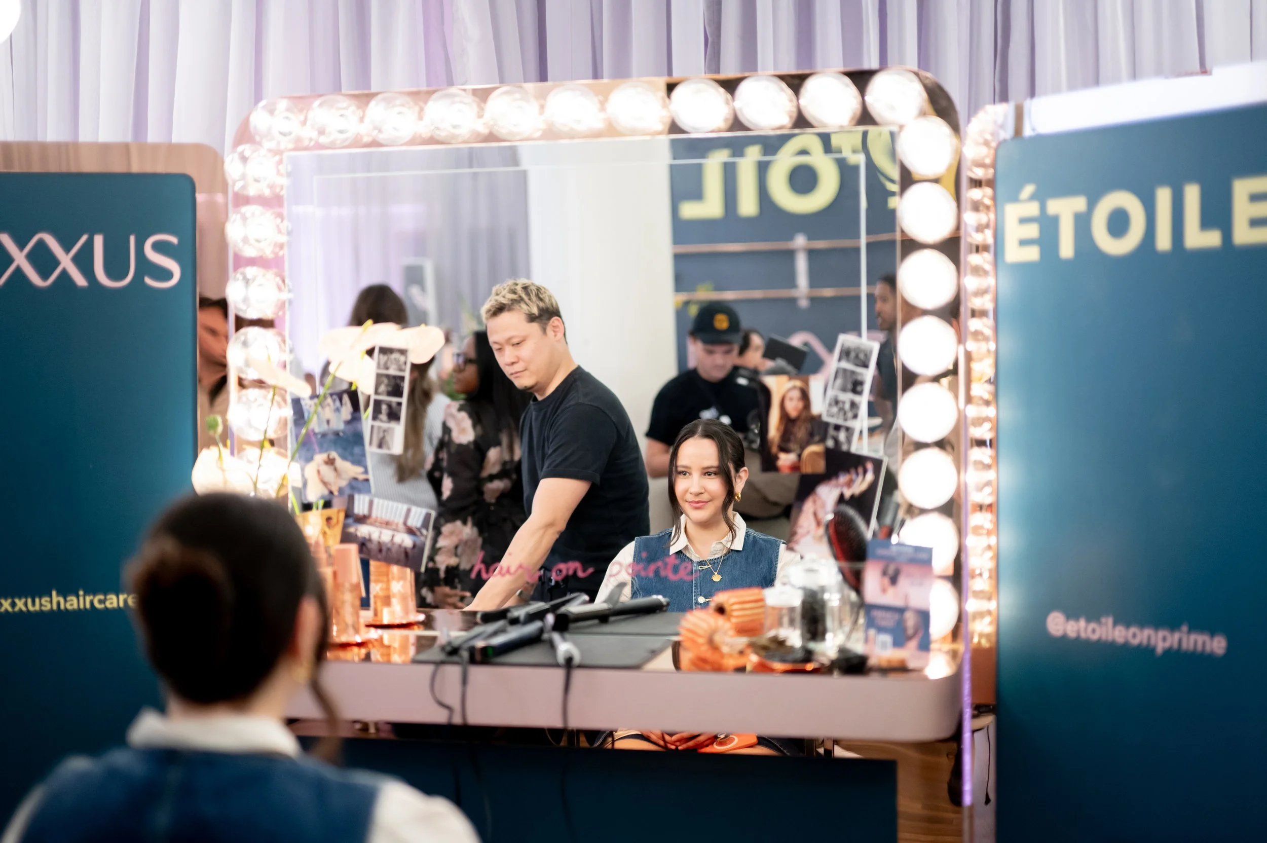 When the livestream concluded, dozens of influencers & passersby were invited into the activation to have their hair styled, get a headshot taken (and instantly delivered), make a video inspired by the world of Étoile, grab a custom branded latte or pastry, or just hang out in the world of the show complete with a live DJ to set the ambiance.