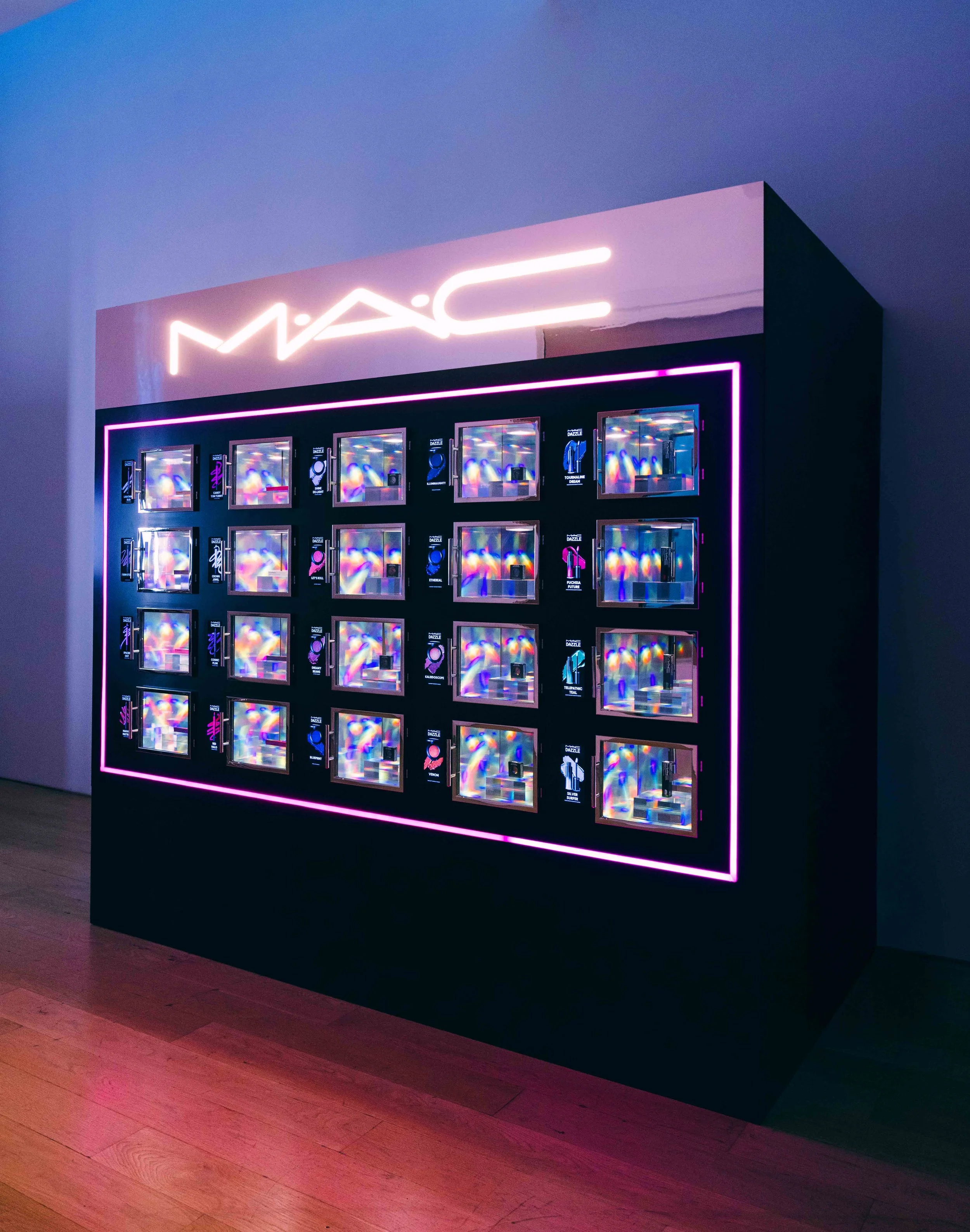 M·A·C artists and ambassadors guided selection and application, keeping the unit active all night while ensuring product was continuously replenished behind the two‑way mirror.