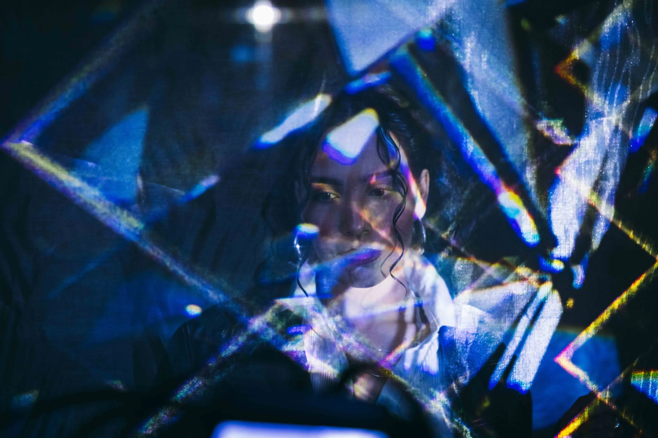 Floor‑to‑ceiling transparent organza scrim spanned the gallery, turning projection into layered, dimensional light. Generative visuals washed across multiple planes to create a kinetic, prismatic volume guests could move through. A dedicated capture team directed short motion portraits and delivered 15‑second clips via instant post, ready for socials in seconds.