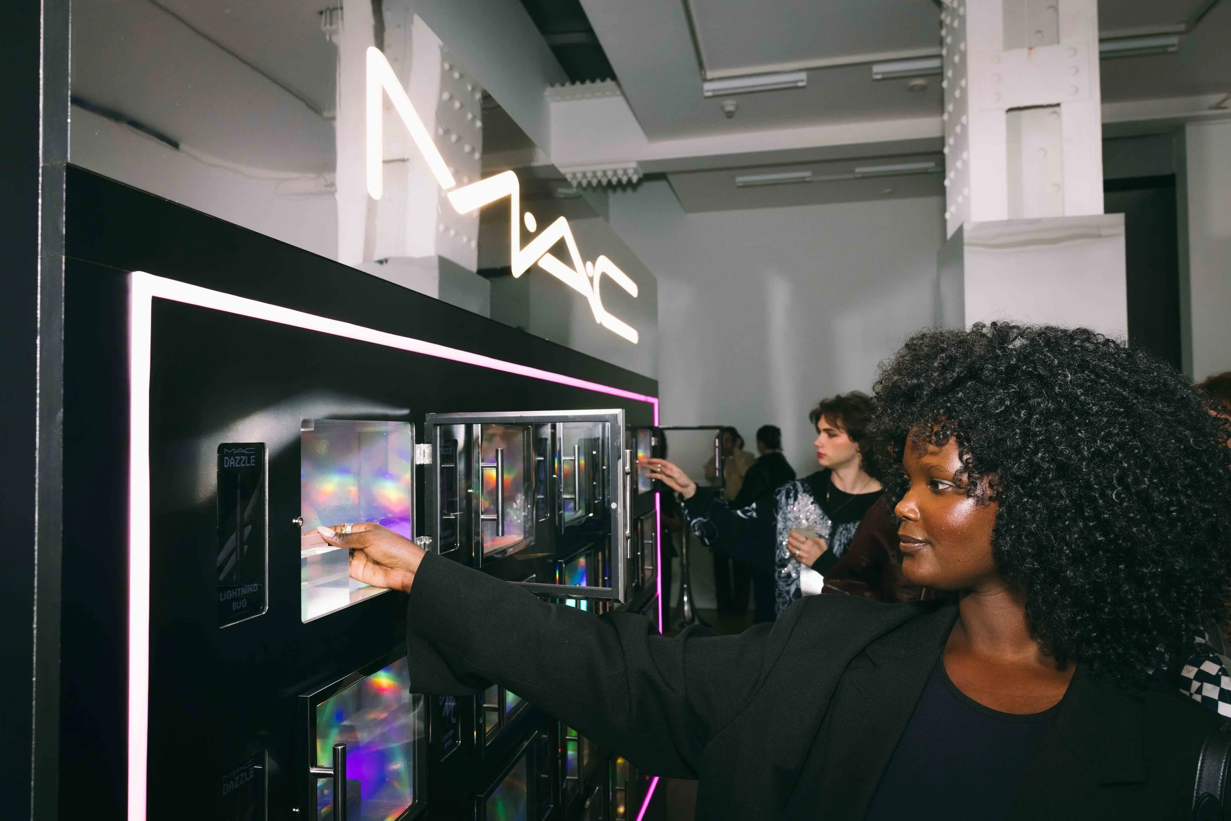 Two illuminated vanities staffed by M·A·C artists closed the loop—shade‑match, layer, and try on (including the new DAZZLELIPS Crayon), then capture and share.
