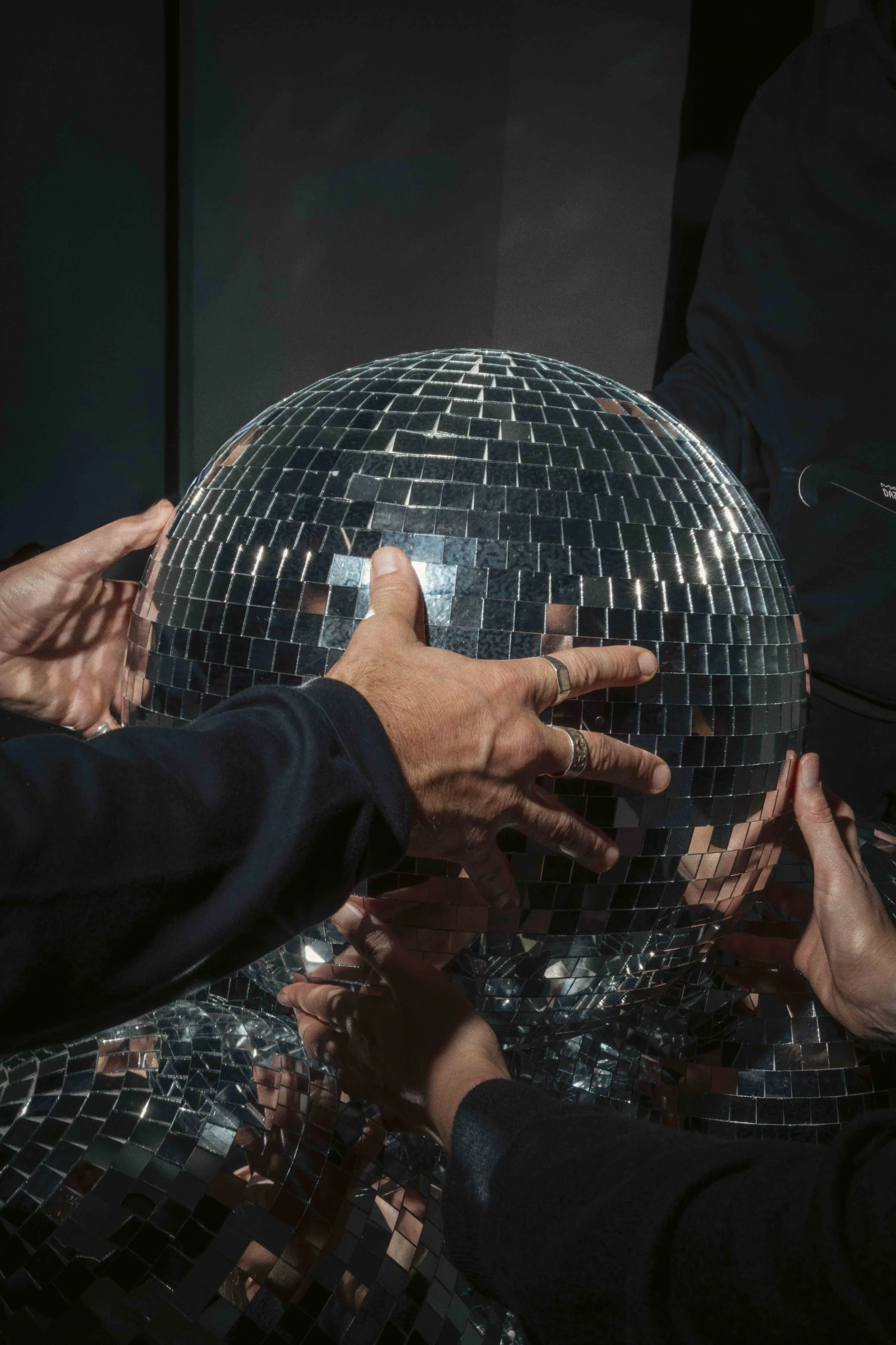 A pyramid of mirrored disco balls became a projection‑mapped sculpture, scattering light across the room in a mesmerizing field. We amplified both IRL and on‑camera effects with branded diffraction glasses, turning every angle into a shareable shimmer.